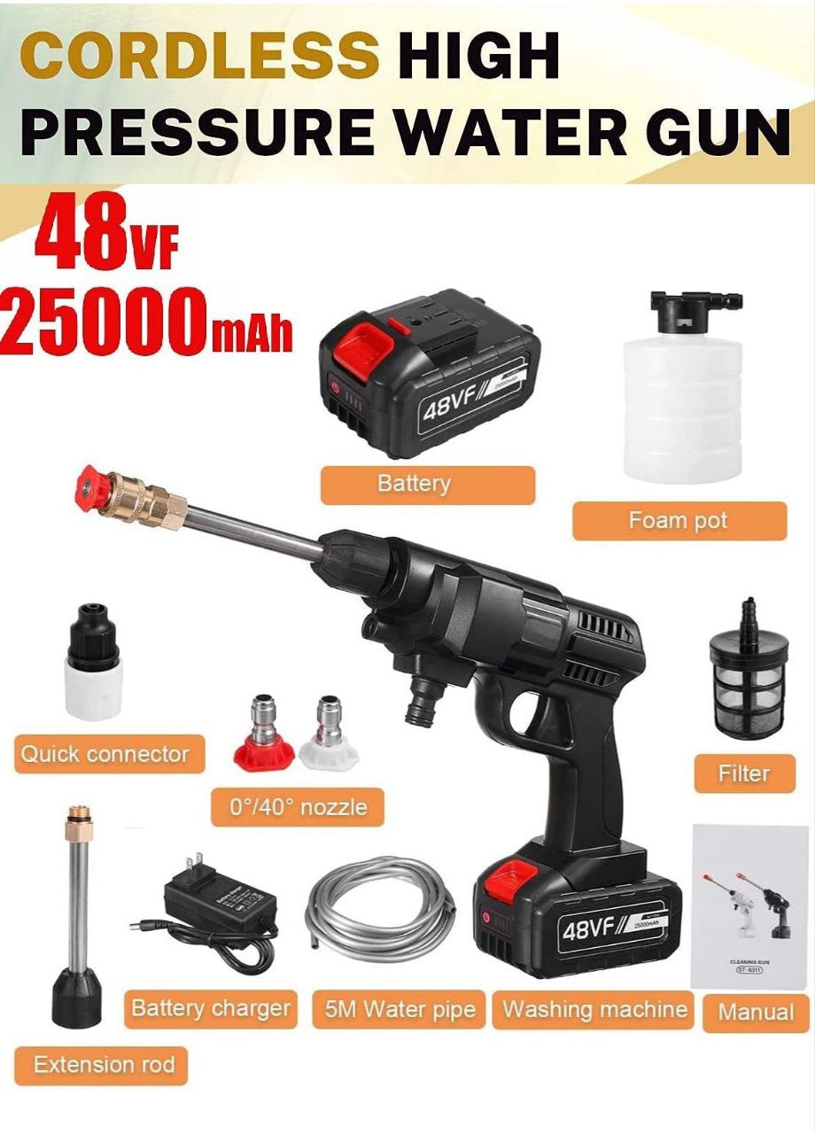 مسدس غسيل لاسلكي مع 2 بطارية بسعة 1500 مللي امبير