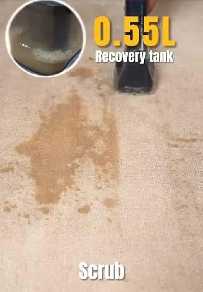 3. التشغيل: اضغط على زر التشغيل وابدأ في إزالة البقع على السجاد والمفروشات.